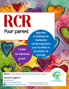 À travers cet atelier, les parents, les grand-parents et même les gardiens, gardiennes apprendront la technique de réanimation cardio-respiratoire (RCR), comment désobstruer les voies respiratoires et la position latérale de sécurité.